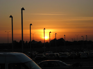 Our adventures upon arriving in Tel Aviv began with our trip to the rental car office. We rented from Thrifty, but took the rental car shuttle to the Hertz, Avis, Budget, etc., stop. No Thrifty. We finally were able to contact Thrifty and they sent Moti to pick us up. While at the Thrifty office, we were treated to our first magnificent Israeli sunset.