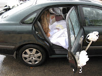 As we walked to the bus we saw a bride getting her picture taken in the rain. Weddings often take place on Thursdays in Israel and traditionally the bridal car is wrapped like a gift.